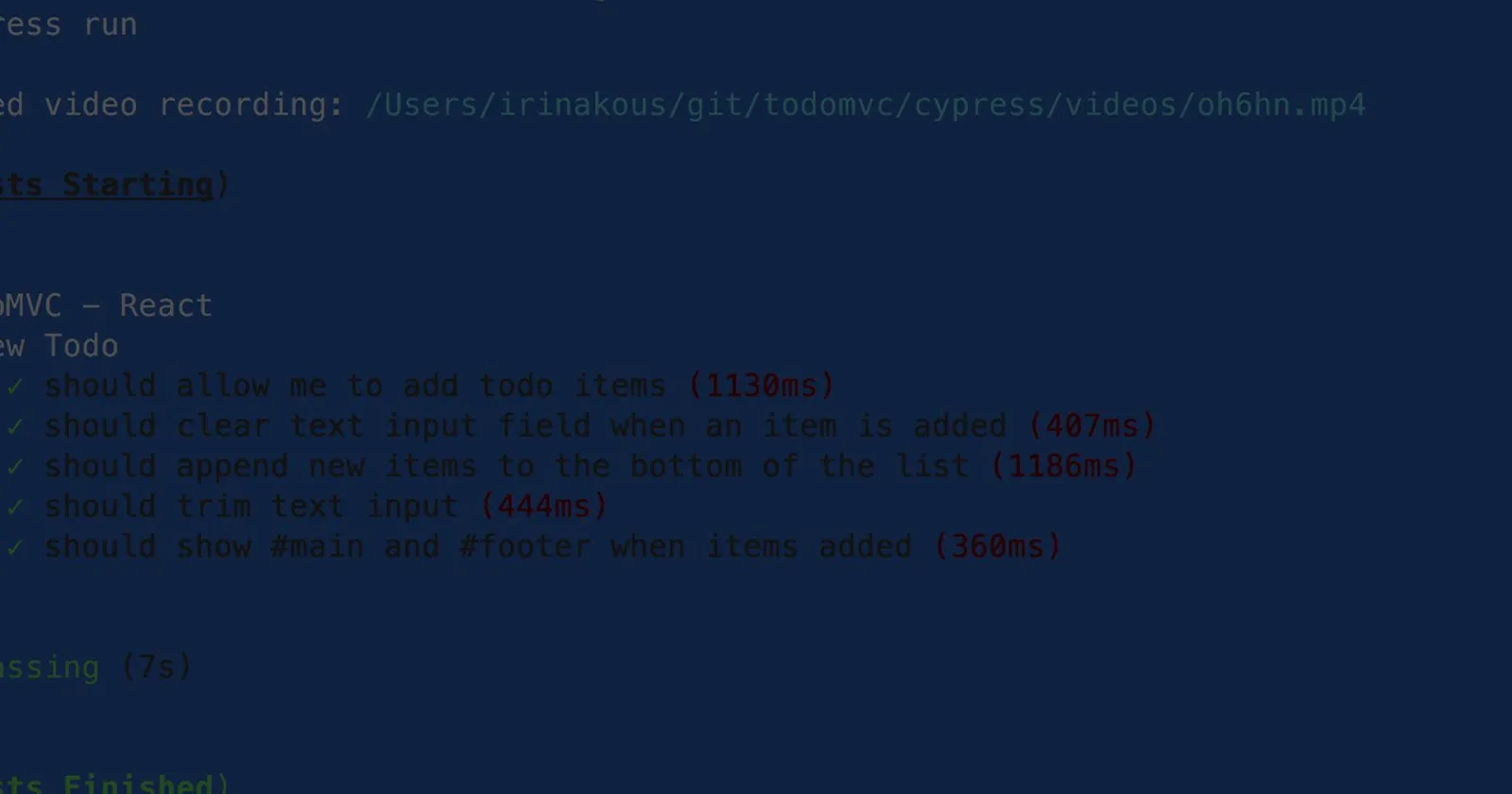 Started video recording: /Users/irinakous/git/todomvc/cypress/videos/xjl7n.mp4