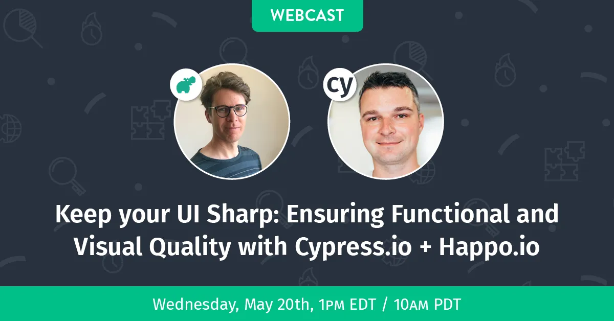 Join us on Wednesday, May 20th at 1pm EDT/10am PDT to learn how to add visual regression testing with Happo to your Cypress tests, to keep your UI sharp.