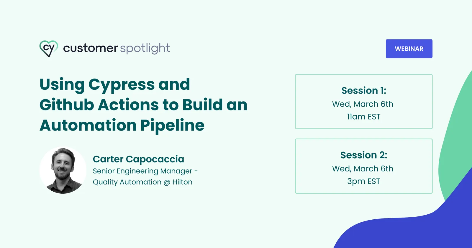 In this webinar, we'll explore the dynamic duo of Cypress and GitHub Actions, unlocking the potential for an automated CI/CD pipeline. Say goodbye to manual checks and hello to streamlined automation with quality assurance checks seamlessly integrated into your workflow. Carter Capocaccia, Senior Engineering Manager - Quality Automation at Hilton, will walk us through visualizing the automated CI/CD workflow, demonstrating Cypress + GitHub Actions setup, implementation, and debugging.
