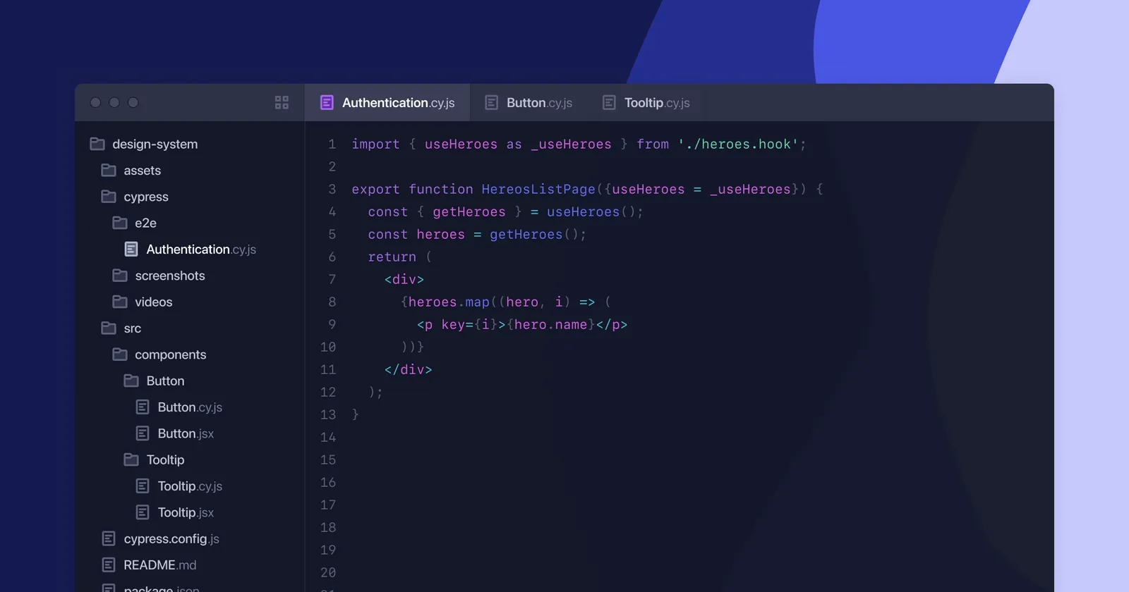 For instance, take the following React component that uses the useHeroes hook, which fetches data from a backend service: