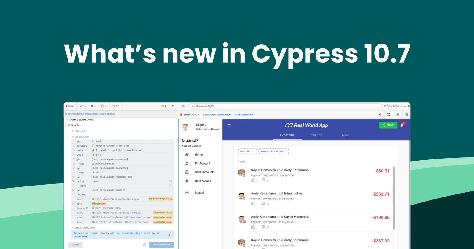Cypress Studio provides a visual way to generate tests within Cypress, by recording interactions against the application under test. It is especially useful for existing code bases, where you would like to quickly and easily add some test coverage — all visually, without needing to write a single line of code!