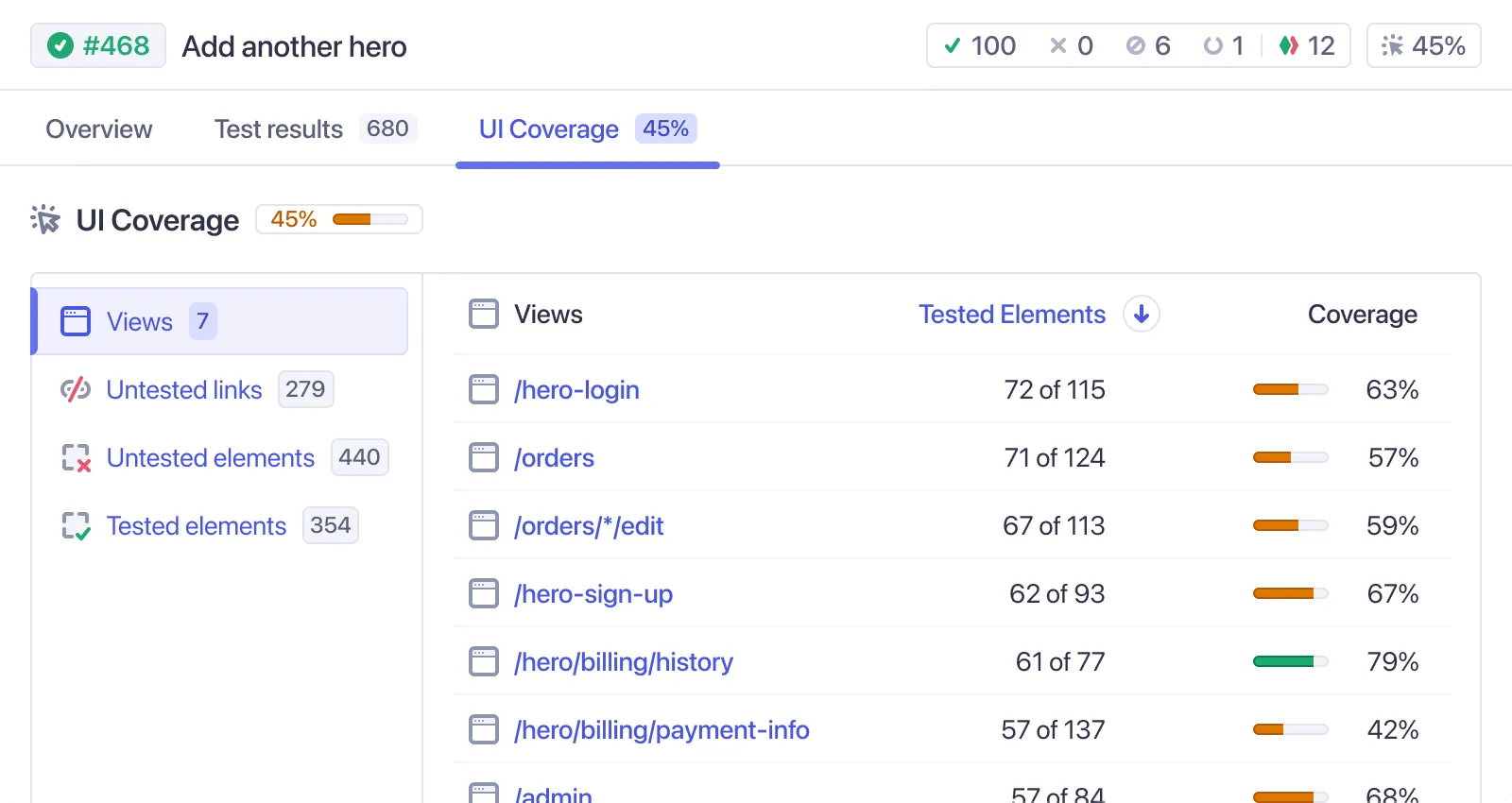 UI Coverage provides a visual overview of test coverage across every page and component of your app, offering clear insights into uncovered areas that everyone can understand.